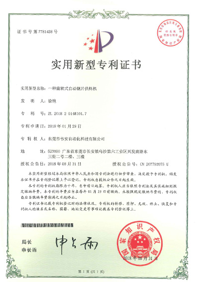 一种旋转式自动钢片供料机-ZL201820148101.7